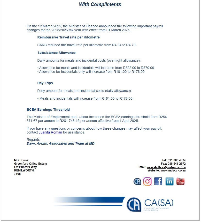PAYE Annual Reconciliation | Tax year 01 March 2025 – 28 February 2026