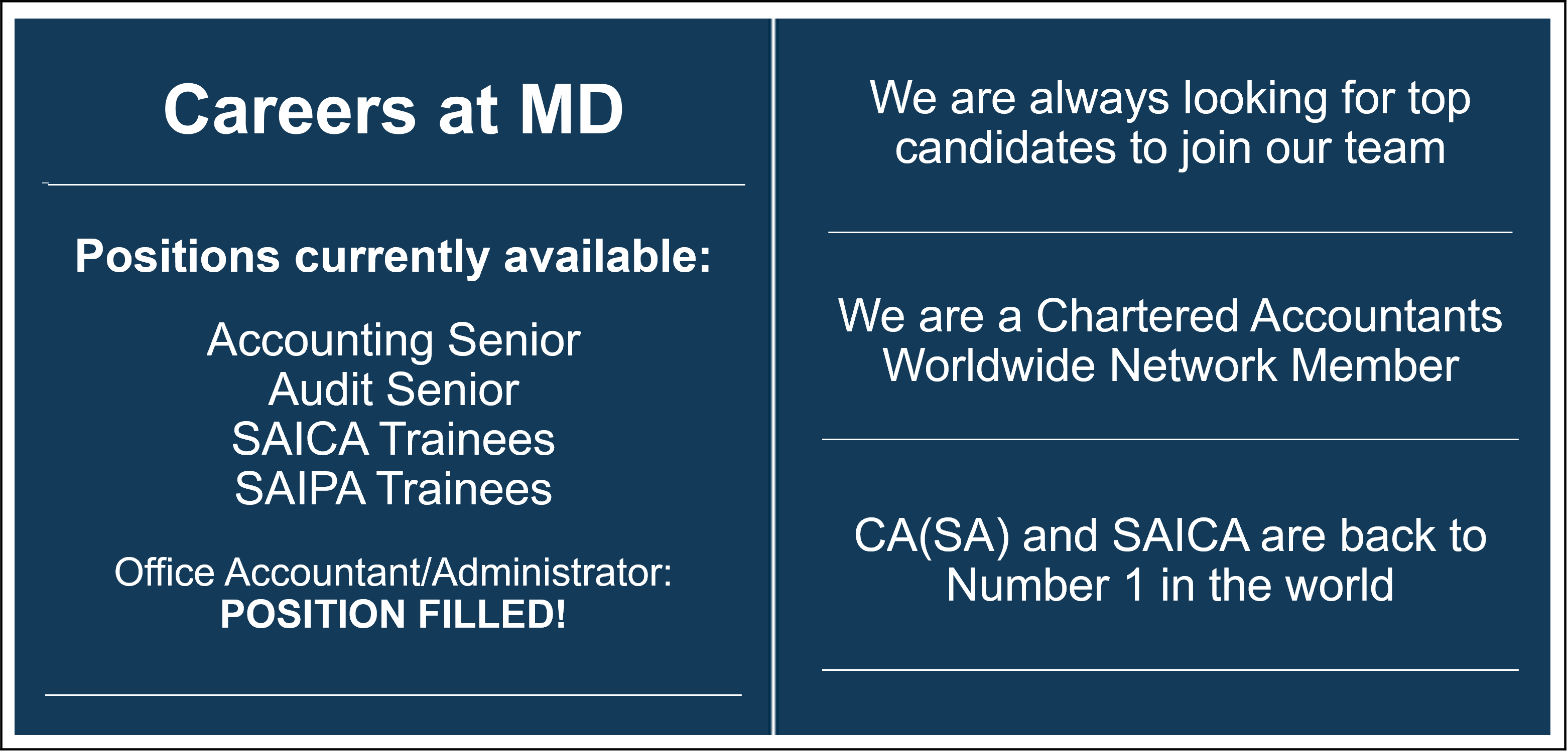 Careers at MD Update: Position Filled! More Positions still Available – Apply Today!