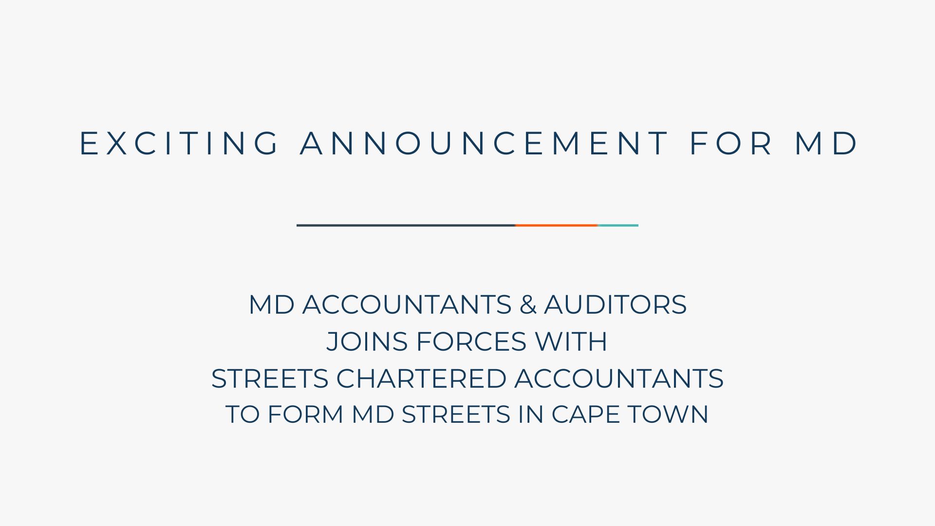 On 1 January 2026, MD Accountants & Auditors will merge with Streets Chartered Accountants, a Top 40 UK accountancy and advisory firm. The newly combined practice will operate under the names of MD Streets Accountants and MD Streets Auditors.